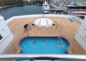 Η γνώση μας στις εφαρμογές επιπεδοποίησης ξεκινάνε από το 1999 και το 2002 αναλάβαμε την Επιπεδοποίηση όλων των καταστρωμάτων , στο Giga Yacht Octopus στα ναυπηγεία της Lurssen, Γερμανίας.